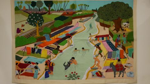 Présentation de tentures brodées données au musée d'Ethnographie par l'Association BrodIndra. Ces tentures proviennent de la région de Pondichéry. L'Atelier Au Fils d’Indra a permis à des femmes de Pondichéry et des villages proches de faire vivre leurs familles dans la dignité, en élaborant d'étonnantes toiles murales brodées suivant un procédé issu d’une technique ancestrale.
